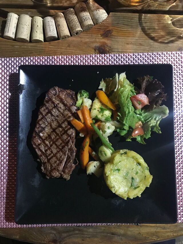 O bife da casa é o sucesso de vendas, mal passado é como o chef o recomenda.